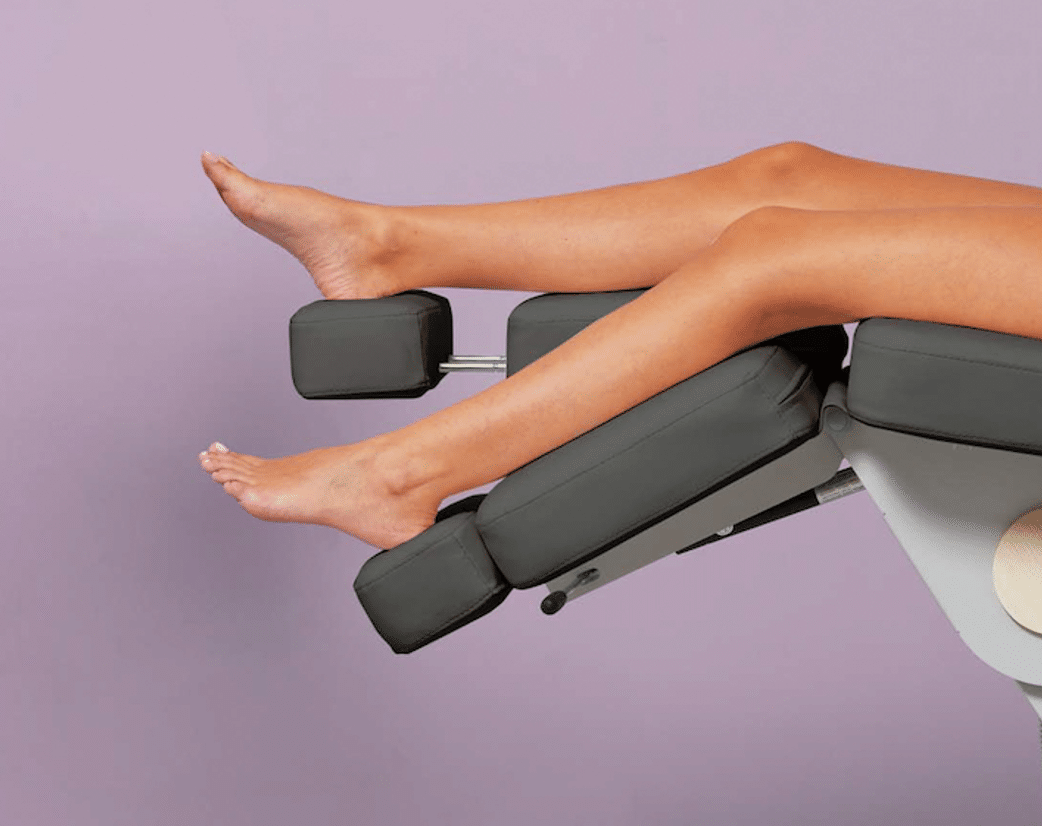 Beinteile mittels Gasfeder unabhängig voneinander regulierbar. Ausgestattet auch mit ausziehbaren Fußstützen, die angepasst oder entfernt werden können, um die beste Position sowohl für den Patienten als auch für den Profi zu gewährleisten.